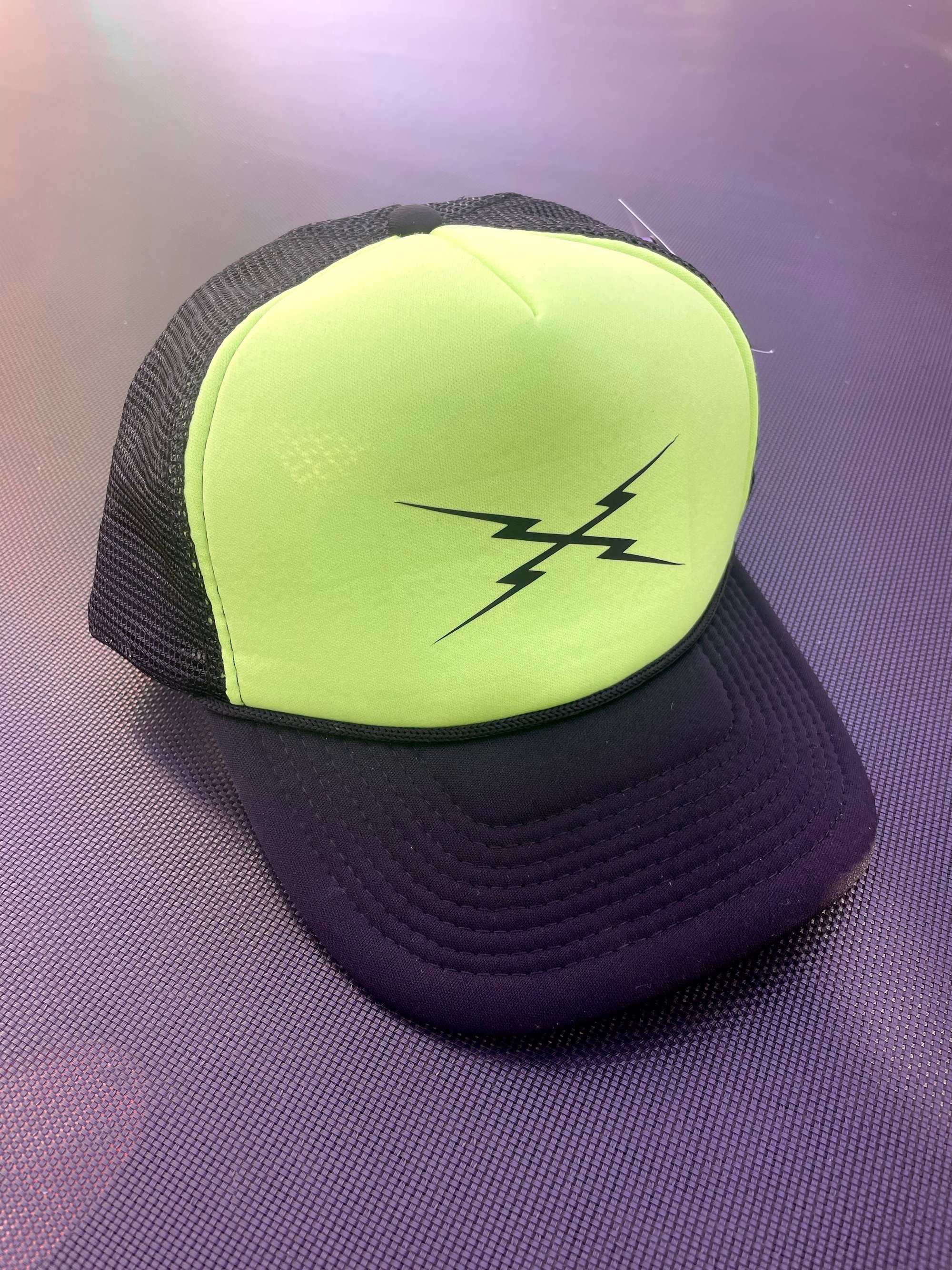 Neon/ black mesh hats w/ RB bolt printed locally right here in Las Vegas.